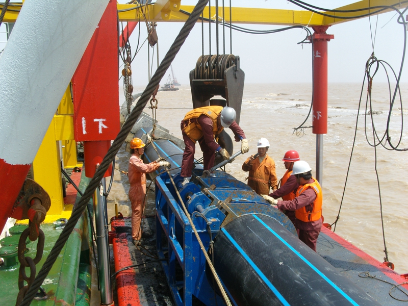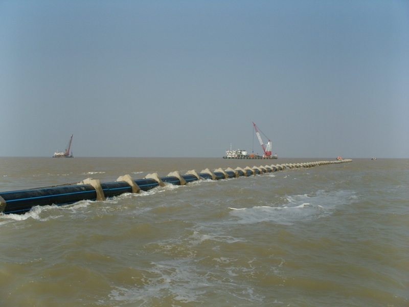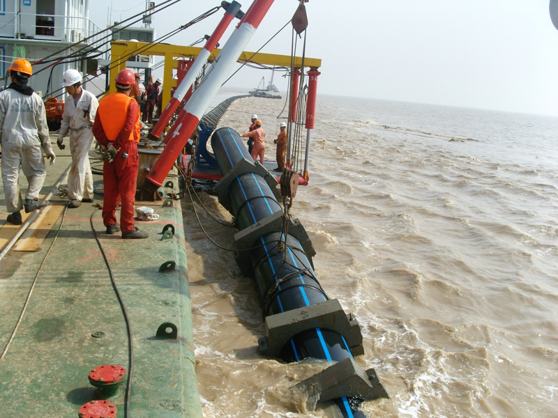 2008年江(jiāng)蘇鹽城濱海開發區汙水深(shēn)海排放工程,項目(mù)總投資達1.4億元,管道直徑1000M M,陸地鋪設約3KM、海底鋪設(shè)約8KM。該工程(chéng)為青青草免费在线观看视频建設總承包施工,包含材料采購、排(pái)海泵站建設(shè)、陸上非開(kāi)挖(wā)施工、海底開挖施工、尾端擴(kuò)散器水下安裝等。