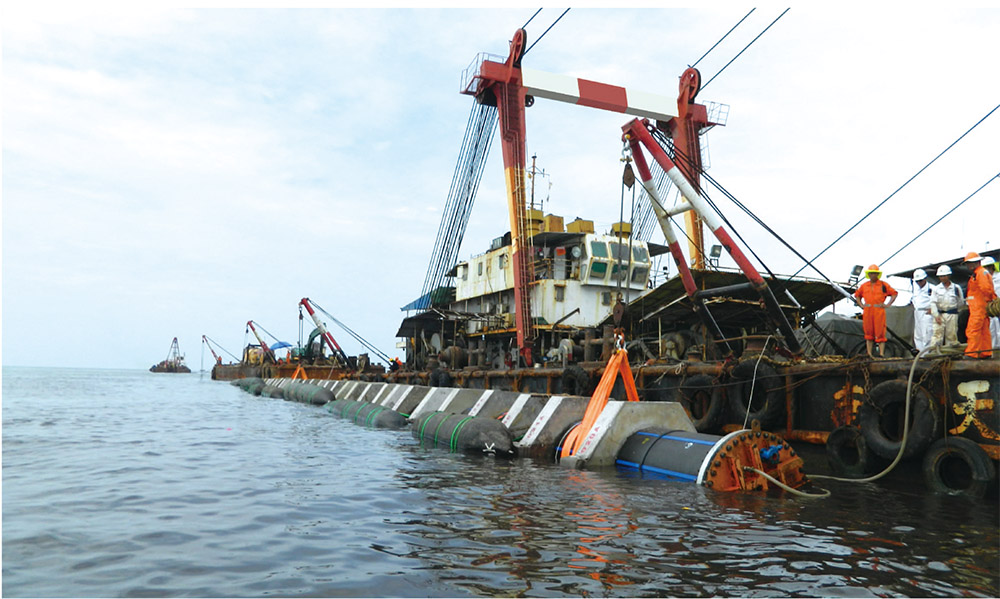 2013年斯(sī)裏蘭(lán)卡首都科倫坡市東(dōng)區汙水深海排放項目。該項目由(yóu)斯裏蘭卡科倫坡市政委員會投資700萬美元對(duì)首都科倫(lún)坡市(shì)東區汙水深海排放管道進行修複(fù)與新建,管道直徑1600MM,在印度洋底輔設近1.5KM。